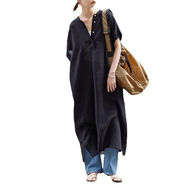 心地よい着用感とおしゃれなデザインを兼ね備えた「夏の新型Vネックのゆったりワンピース」で、あなたのスタイルに新たな魅力を加えてみませんか?