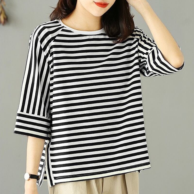 この「トライプ七分袖Tシャツ」を身に着けることで、洗練された日常スタイルがあなたの魅力を引き立て、快適な着心地が素敵な一日をサポートしてくれることでしょう!
