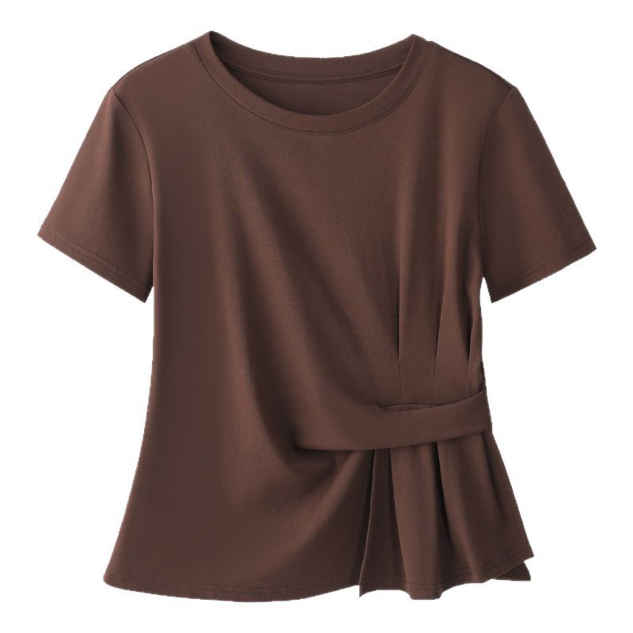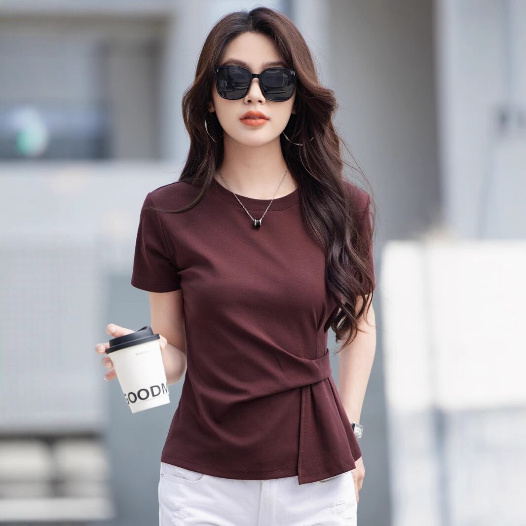 この「丸襟半袖Tシャツ」を身にまとえば、軽やかでおしゃれな夏スタイルを存分に楽しむことができるでしょう!
