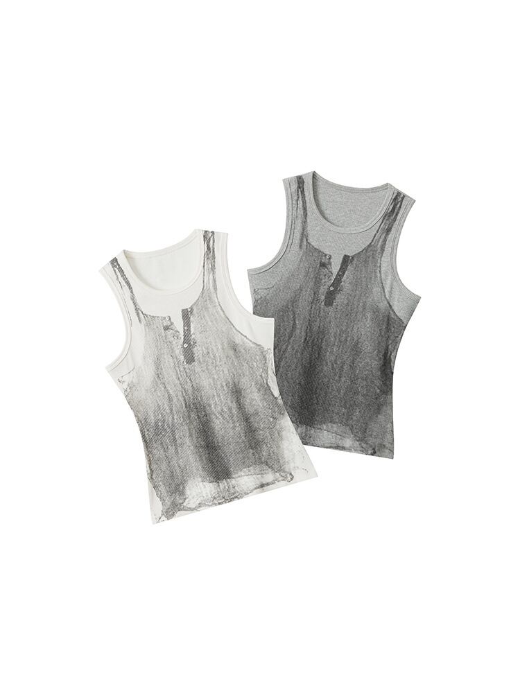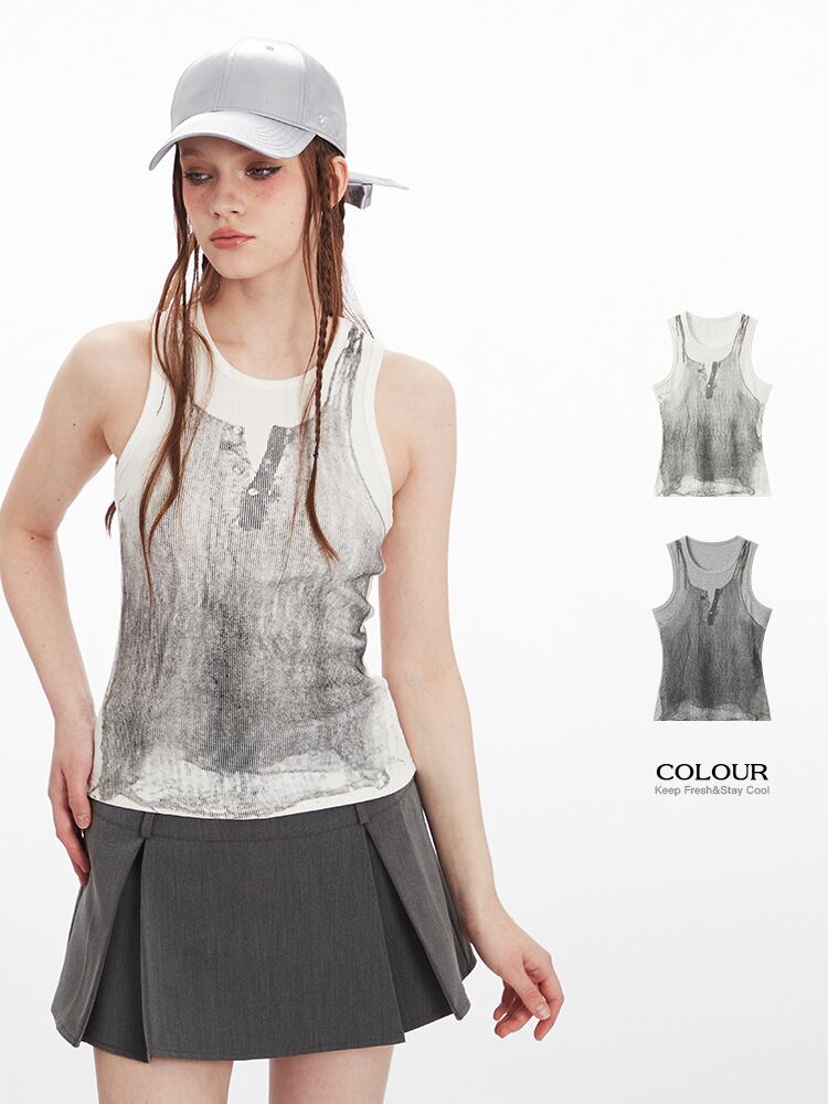 このアイテムは、グラデーションプリントが目を引くリブキャミソールです!柔らかな素材が肌に優しくフィットし、スタイリッシュでありながらもリラックス感のある着心地を提供します。デイリースタイルからお出かけまで幅広く使える、魅力的な一品となっています。