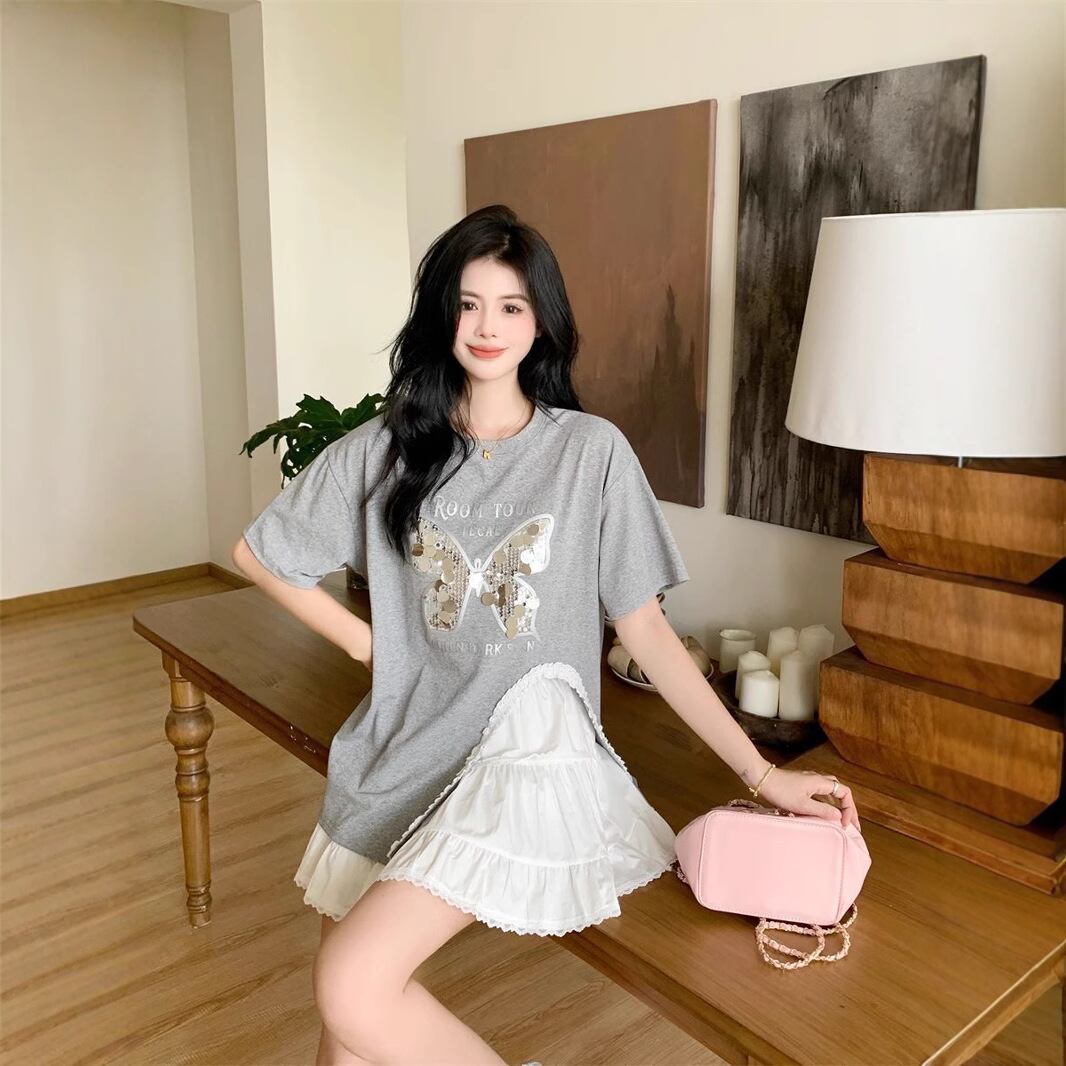 心地よい着用感と華やかなデザインが魅力の「レースは蝶のスパンコール半袖Tシャツ」を手に入れて、あなたのスタイルをさらに素敵に演出してみませんか?