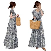 心地よい着用感とトレンディなデザインを兼ね備えた「夏の小柄なⅤネックロングプリントワンピース」を手に入れて、夏のスタイルをもっと楽しくしてみませんか?