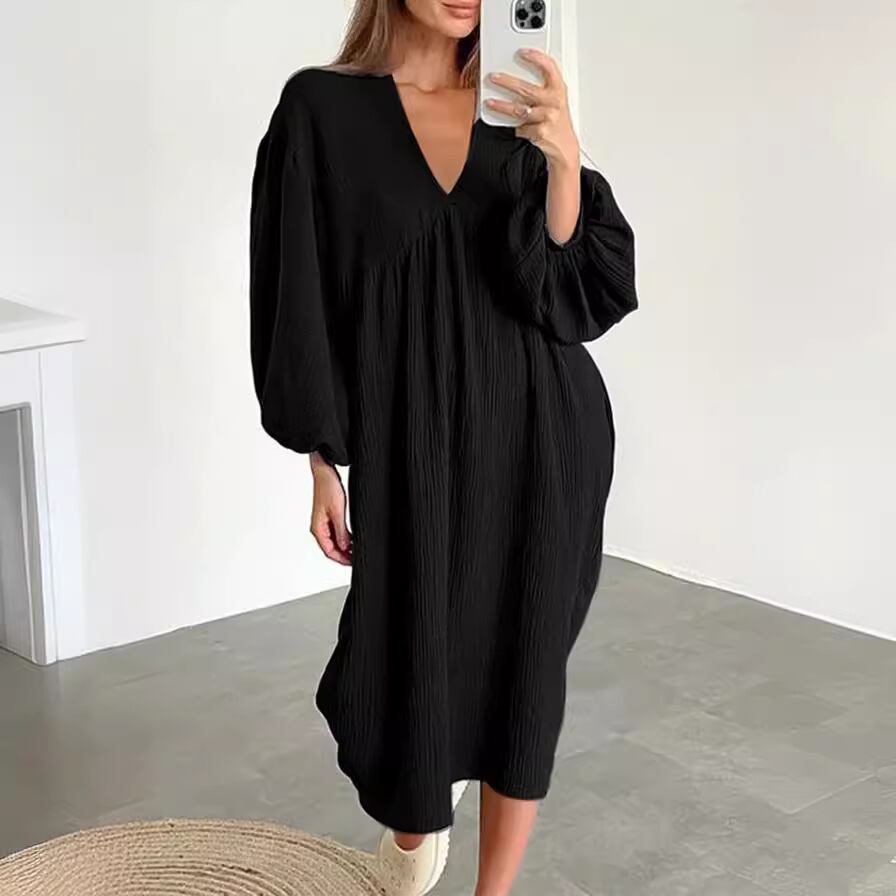 心地よい着心地とシンプルでありながらスタイリッシュなデザインが楽しめる「速売・新型純色ポケットⅤネック長袖ワンピース」を手に入れて、素敵な日常のスタイルを楽しんでみませんか?