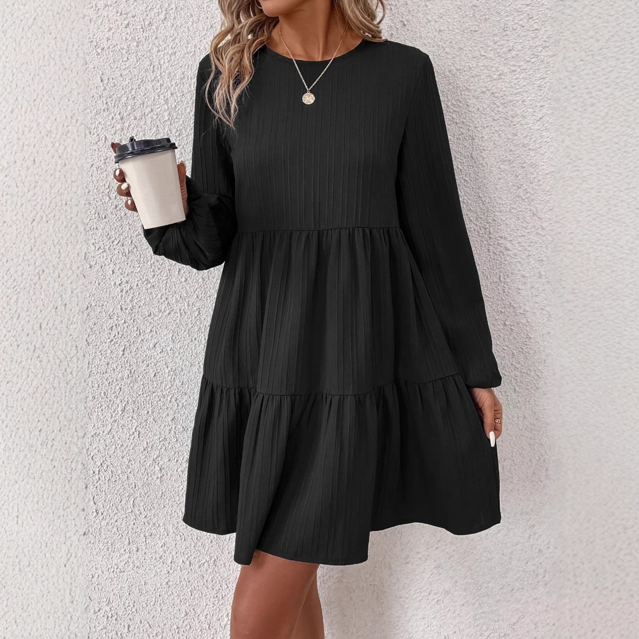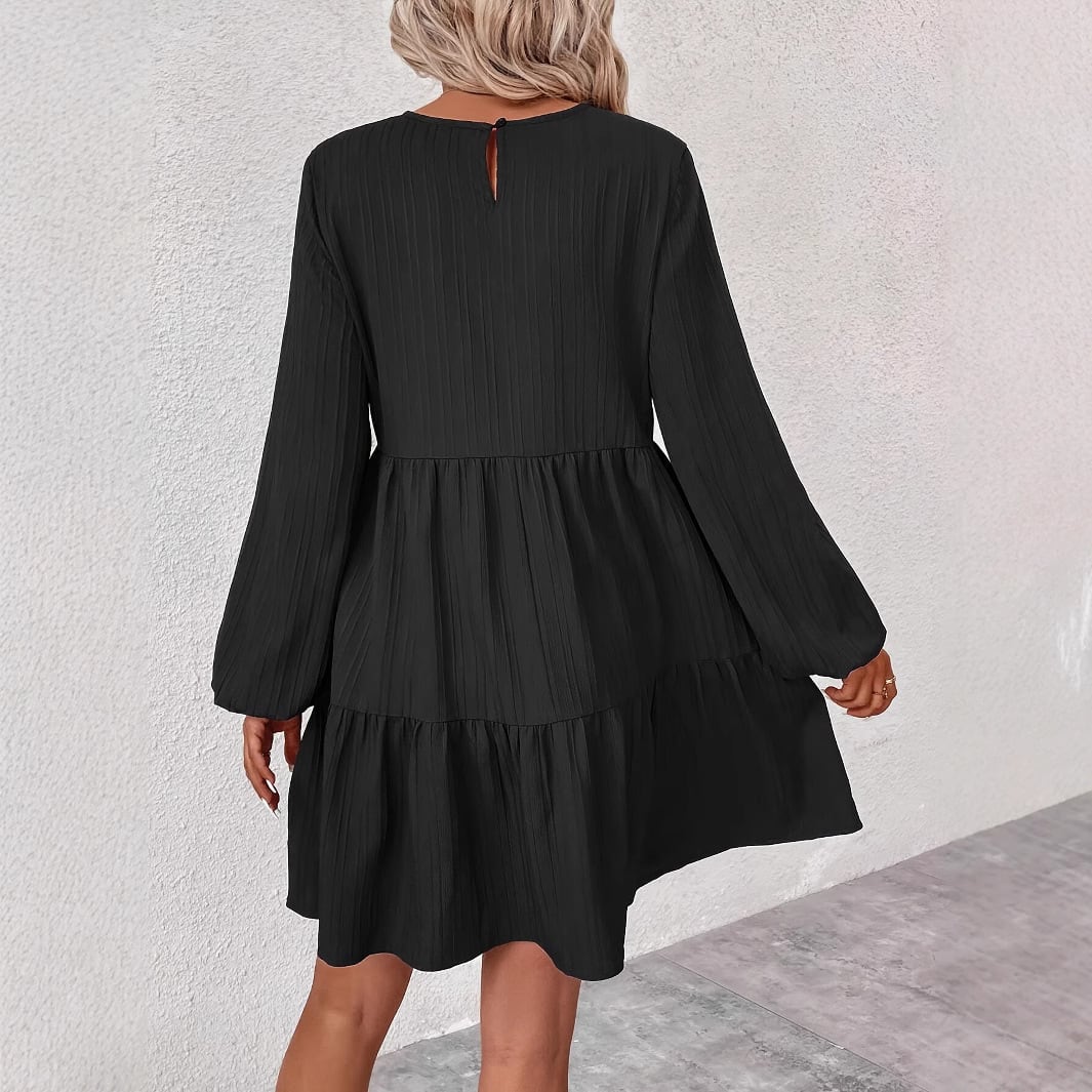 心躍るスタイルと快適さが楽しめる「秋の黒い純色の丸首長袖シンプルカジュアルワンピース」で、特別な瞬間をお楽しみください!