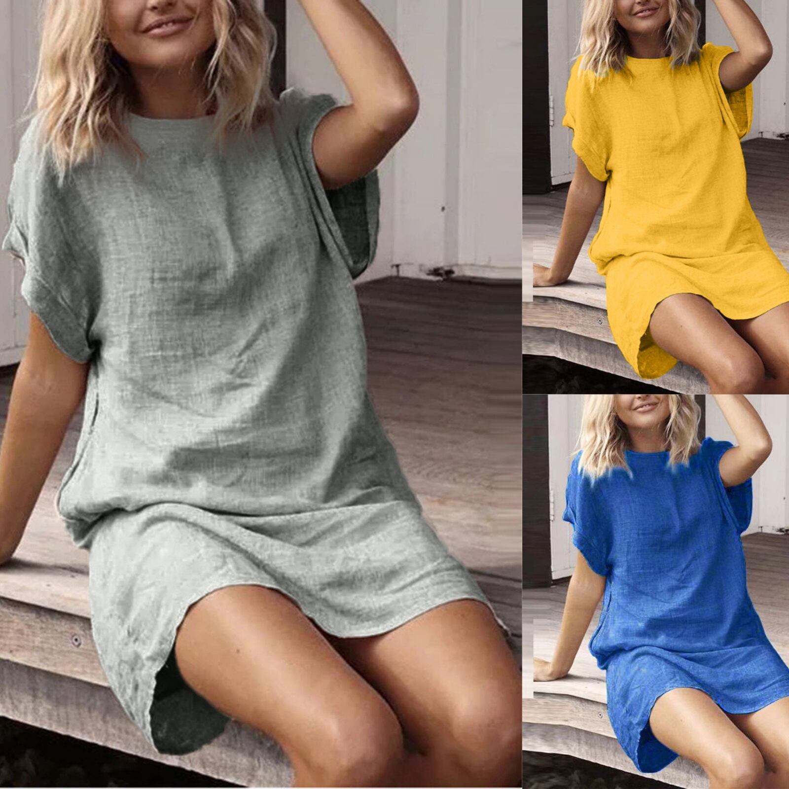 心躍るスタイルと快適さが楽しめる「ルーズカジュアル・半袖コットンとリネンのチュニック」で、特別な瞬間をお楽しみください!