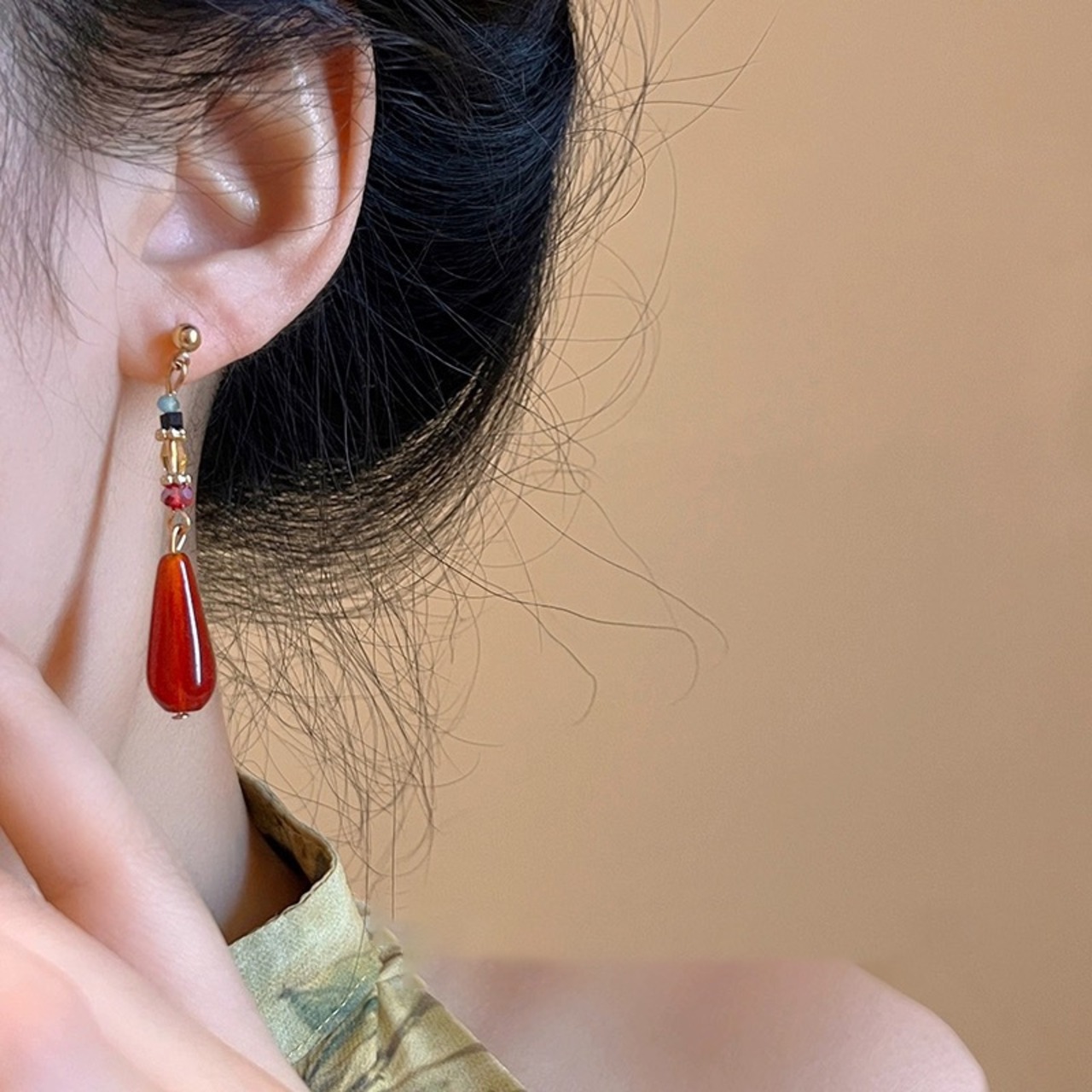 心躍るスタイルと優雅さが詰まった「レトロな長い赤い水滴ペンダントイヤリング」で、特別な日を華やかに演出しましょう!