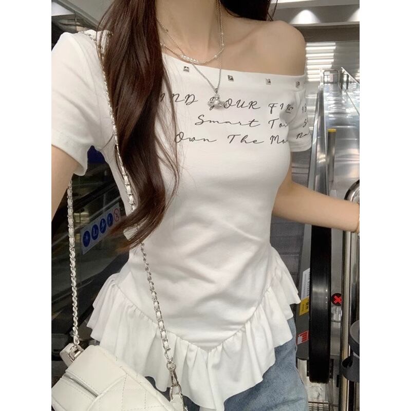 心温まるスタイルとアメリカンレトロの魅力を兼ね備えた「アメリカンレトロなフリルトップインヘム半袖Tシャツ」で、あなたのコーディネートをさらに華やかに演出しましょう!