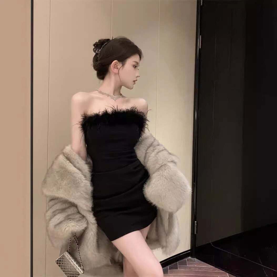 心躍るおしゃれなスタイルを演出する「高級な美しいデコルテの毛羽立ちのワンピースドレス」で、特別な日の美しさを引き立てましょう!