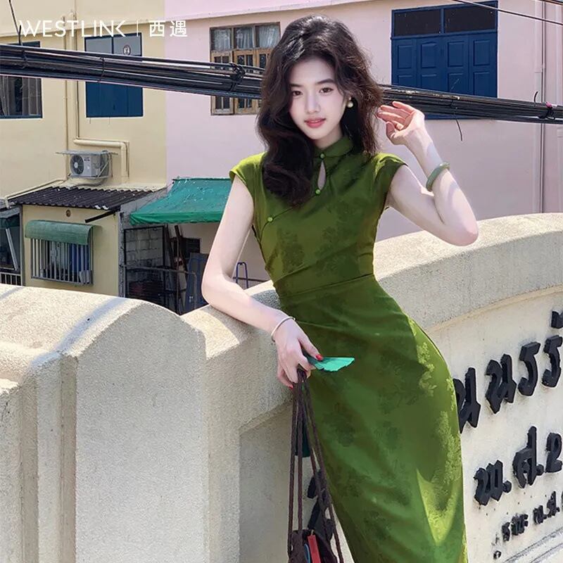 心躍るおしゃれなスタイルを演出する「新しい中国風の緑の改良されたチャイナドレス」で、特別な日の美しさを引き立てましょう!