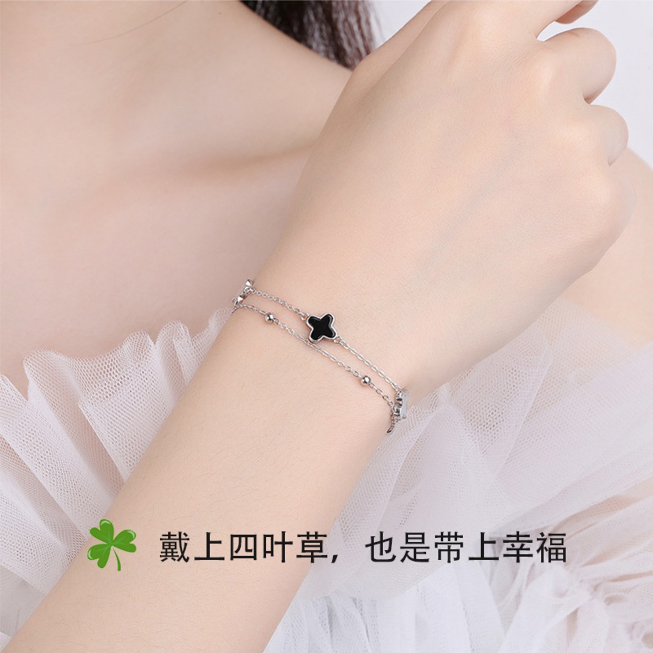 心躍るおしゃれなスタイルを演出する「黒と白の四つ葉のクローバーブレスレットハイエンドジュエリー」で、あなたの魅力を引き立てましょう!