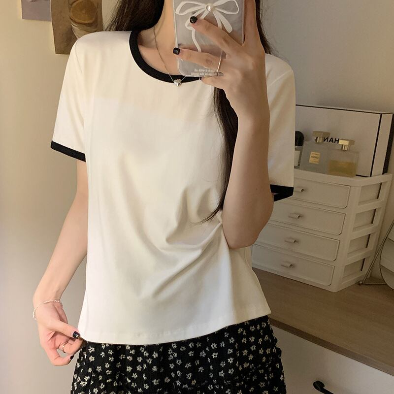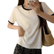 心躍るおしゃれなスタイルを演出する「シンプルで可愛い!黒縁ラウンドネック半袖Tシャツ」で、あなたの魅力を引き立てましょう!