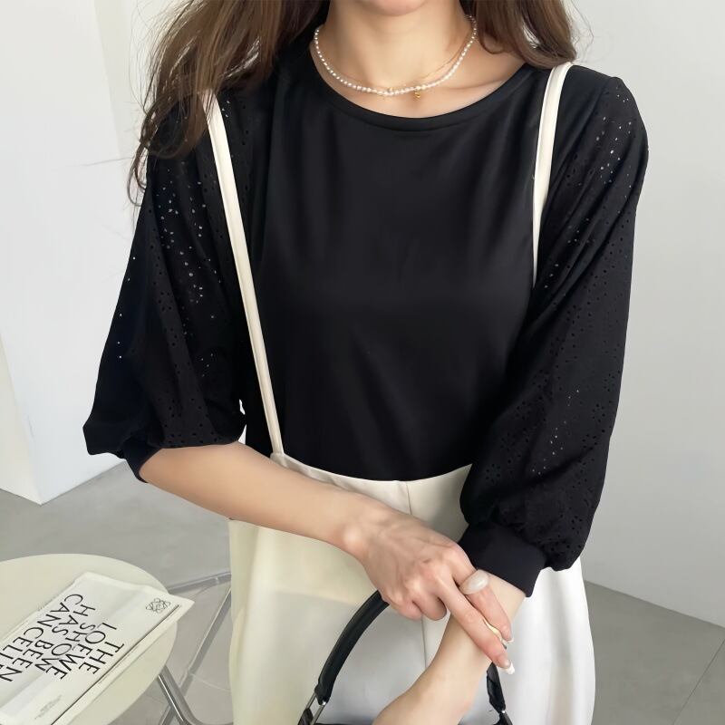 心躍るスタイリッシュな魅力を引き出す「新型レース袖の丸首の半袖シャツ」で、あなたのファッションに特別なエッセンスをプラスしましょう!