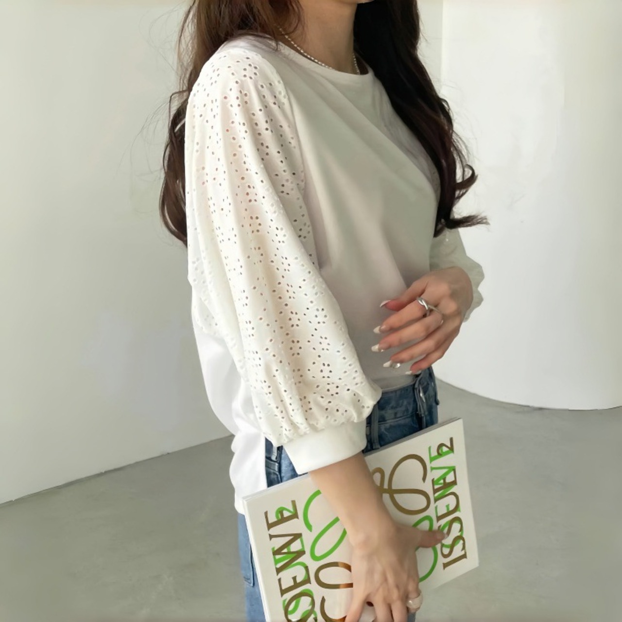 このアイテムは、柔らかな素材を使用した心地よい着心地の半袖シャツです。レース袖デザインが可愛らしさを引き立て、華やかでありながらもリラックスした雰囲気を演出します。デイリースタイルから女性らしさを引き立てるお出かけまで幅広くご活用いただける一着で、快適で涼しい夏をお楽しみいただけます!