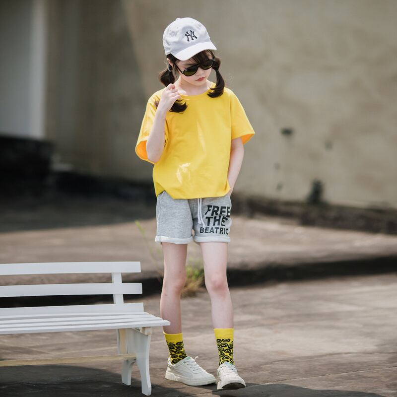 心躍るスタイリッシュな魅力を引き出す「女の子の純綿半袖のプリントTシャツと半ズボン(2点セット)」で、可愛いスタイルを楽しんでみませんか?