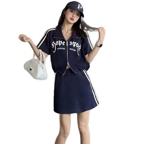 心躍る魅力的なデザインの「スリムフィットジッパースタンドカラートップとハーフスカート(2点セット)」で、あなたのアクティブライフを一層引き立てましょう!