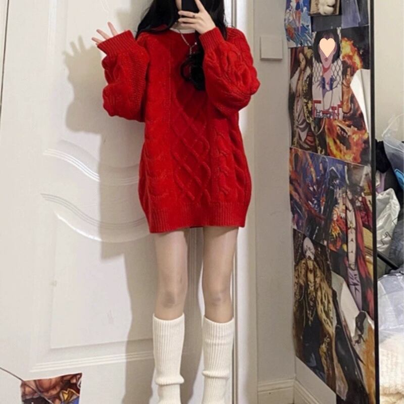 心躍る魅力的なデザインの「秋冬・赤い麻花の厚くて長いニットセーター」で、あなたのスタイルを一層引き立てましょう!