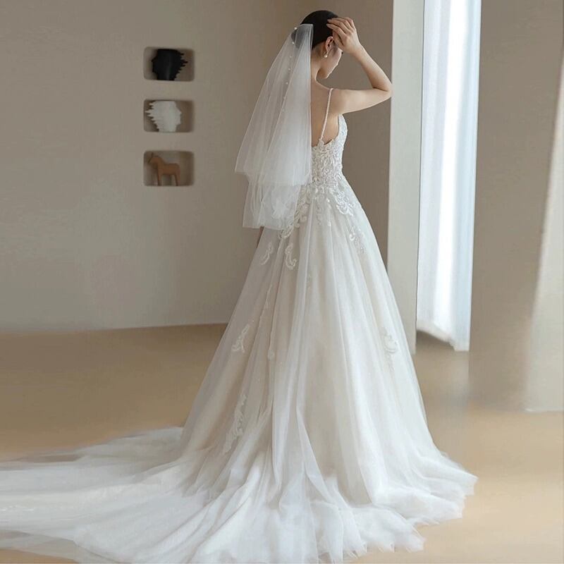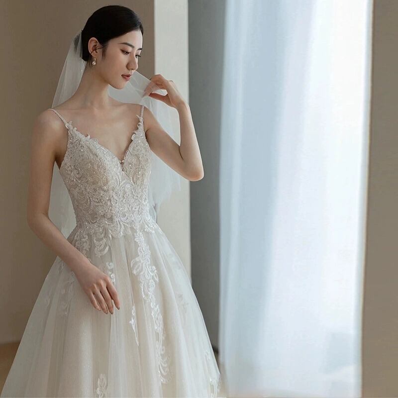 心躍る魅力的なデザインの「ストラップの軽い高級ウェディングドレス」で、特別な日を華やかに彩りましょう!