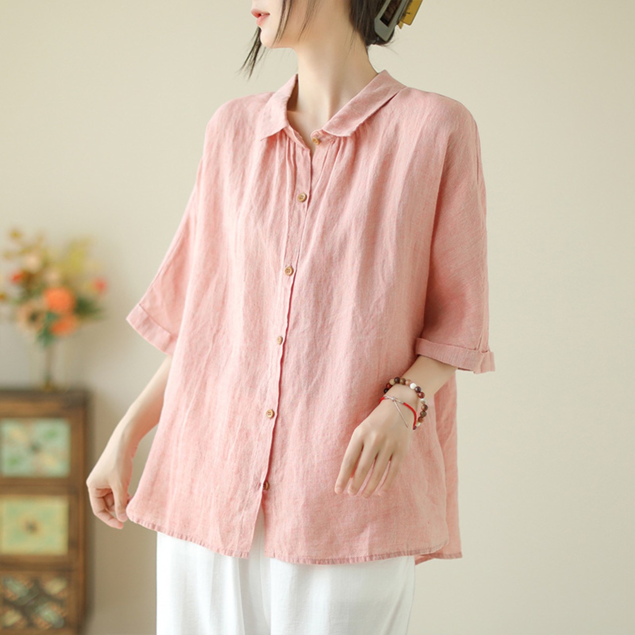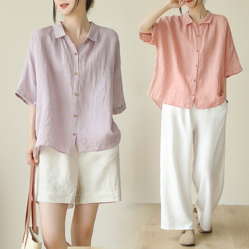 心躍る魅力的なデザインの「無地リネンシャツ・ルーズシャツトップス」で、あなたのスタイルをより一層引き立てましょう!