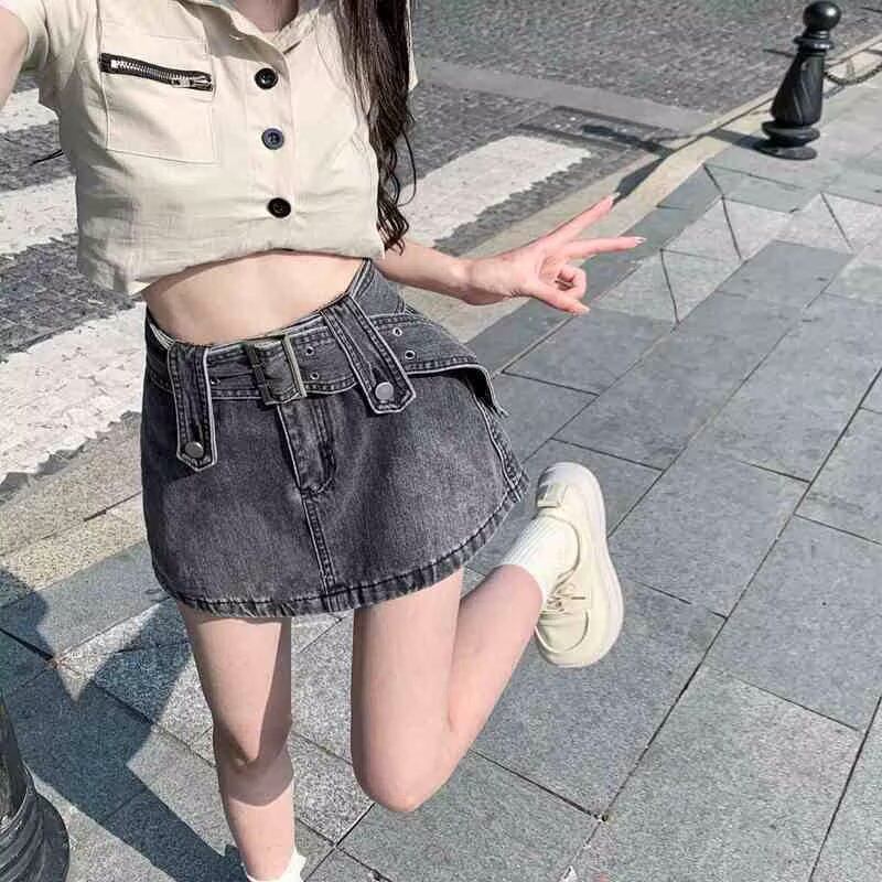 心躍る魅力的なデザインの「高腰の香港風・黒灰色のデニムのギャルスカート」で、あなたのファッションスタイルをより一層引き立てましょう!