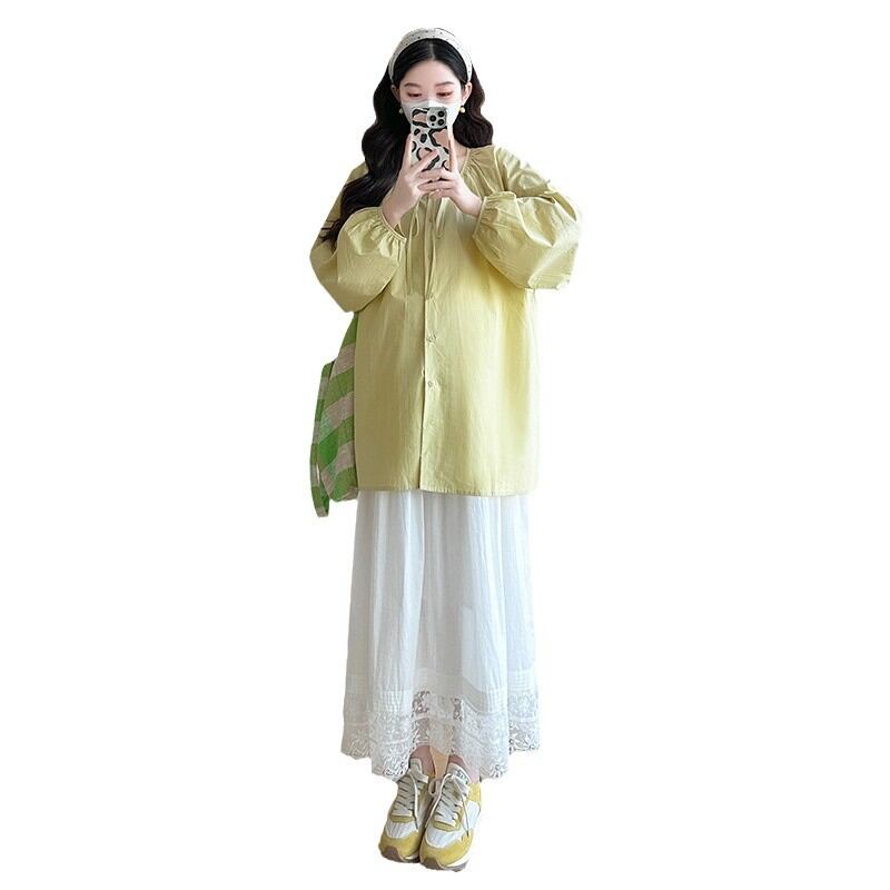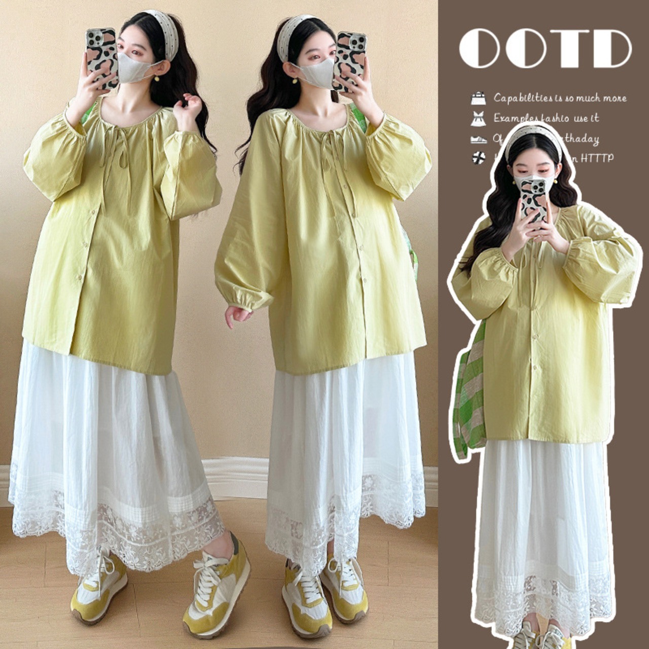 心躍る魅力的なデザインの「春の韓国版(妊婦共用)・あめの色の長いタイプのシャツとスカート(2点セット)」で、あなたのスタイルを一層引き立てましょう!