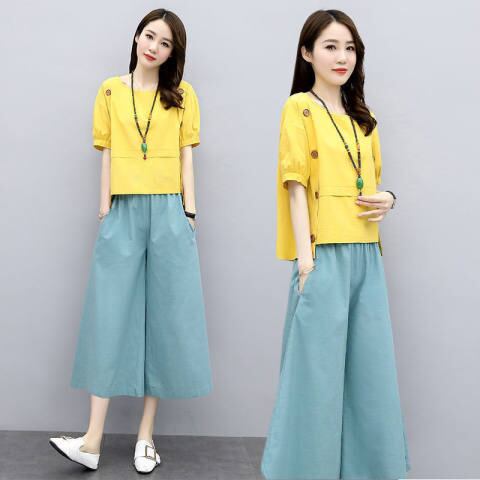 心躍る魅力的なデザインの「半袖夏服 ゆったりとしたツーピース・ワイドパンツの(2点セット)」で、あなたの夏のコーディネートを一層引き立てましょう!