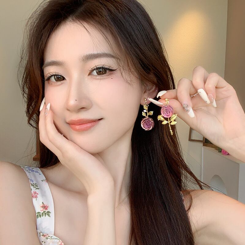 心躍る魅力的なデザインの「フランスのレトロな非対称ピンクのバラの花のイヤリング」で、あなたのスタイルを一層引き立てましょう!