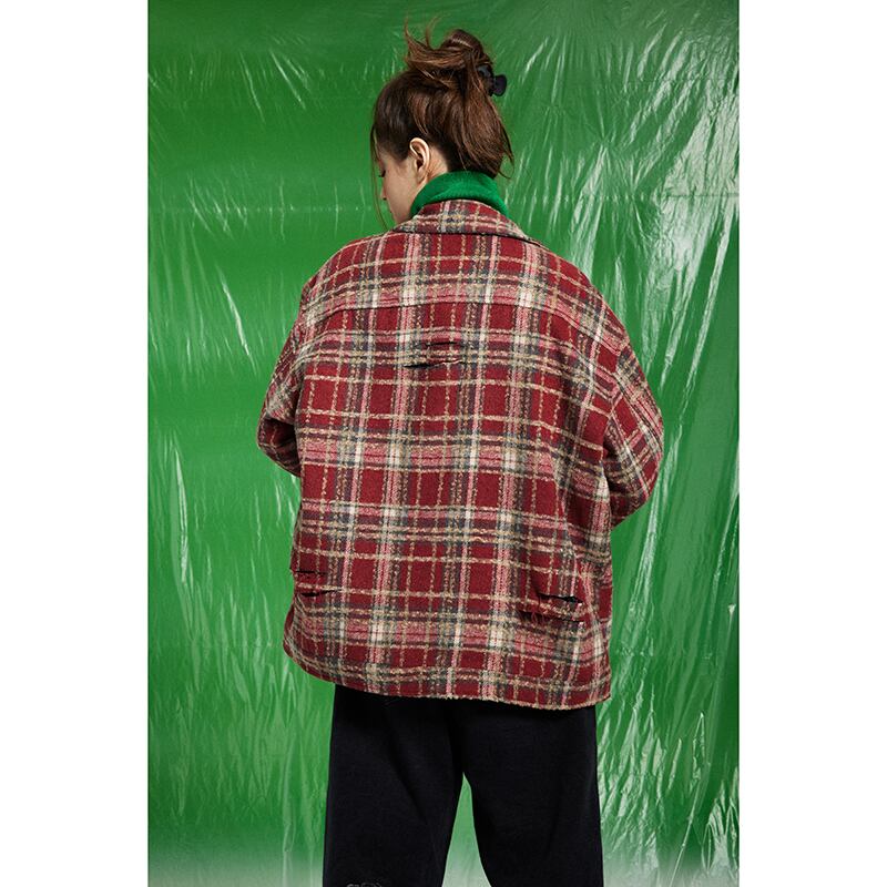 心躍る魅力的なデザインの「秋冬・チェック柄のオーバーサイズジャケット(カジュアルアウター)」で、あなたのスタイルを一層引き立てましょう!