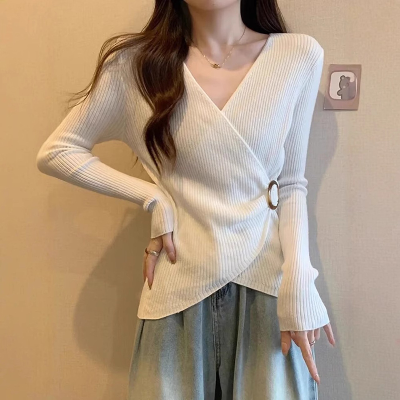 心躍る魅力的なデザインの「フレンチセーター・新型上着Vネックニットのボトムシャツ」で、あなたのスタイルを一層引き立てましょう!