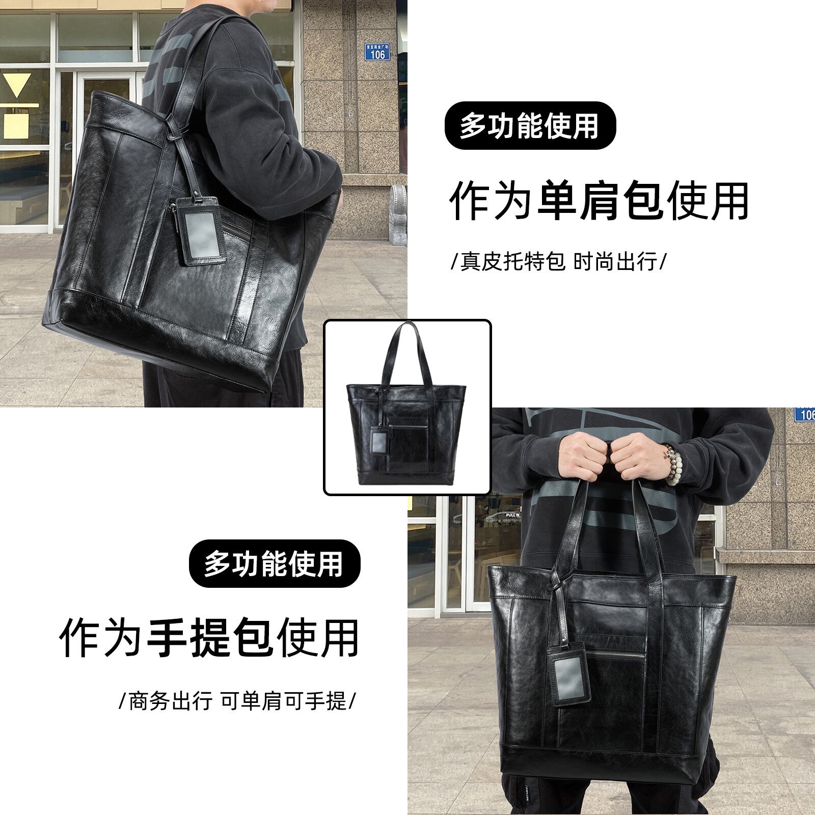 8922 なめし革男性用ショルダーバッグ・本革ビジネス大容量トートバッグ