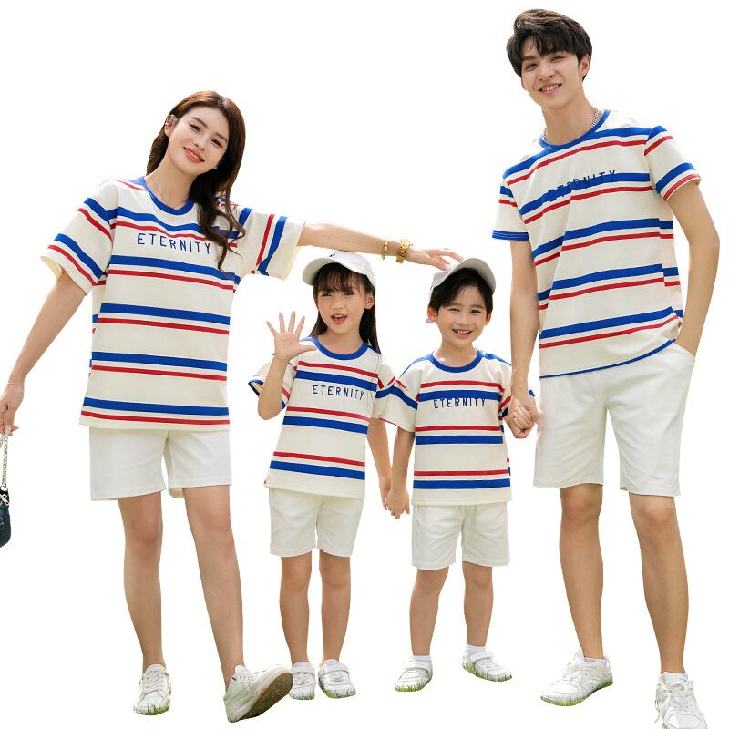 心躍る魅力的なデザインの「夏の新型ストライプ親子コーデ」で、親子のお揃いスタイルを一層引き立てましょう!