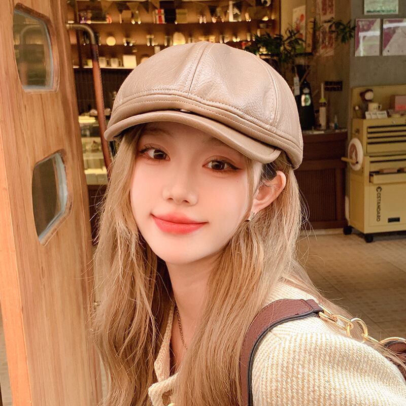 心躍る魅力的なデザインの「PUレザーフォワードハット・秋冬アメリカンブリティッシュレトロキャスケットハット」で、あなたのスタイルを一層引き立てましょう!