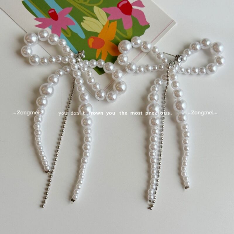 心躍る魅力的なデザインの「欧米売れ筋・ジルコンパールビーズリボンタッセルイヤリング」で、あなたのスタイルを一層引き立てましょう!