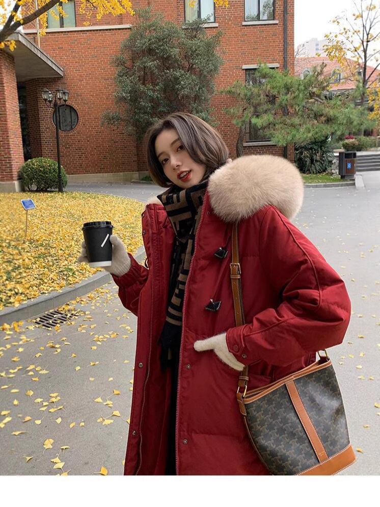 4179【秋冬】 新作冬用 レディースロング丈綿入れコート・ 厚手の大きなファー襟付きジャケットダウンコート