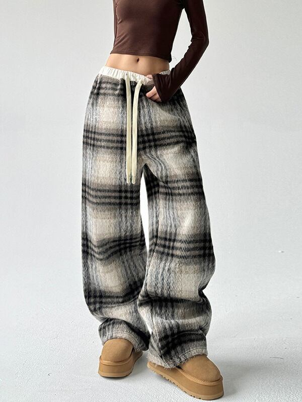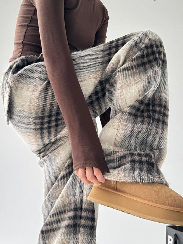 **この秋冬にぴったりな「ベルベットの格子縞のゆったりカジュアルズボン」で、リラックスしたスタイルを楽しみましょう!**