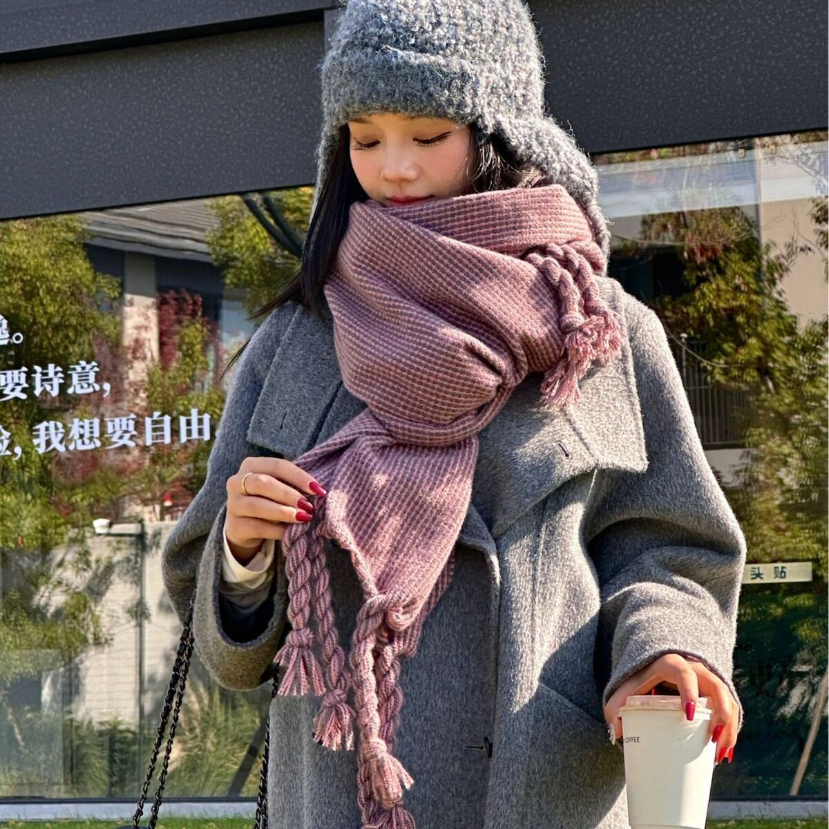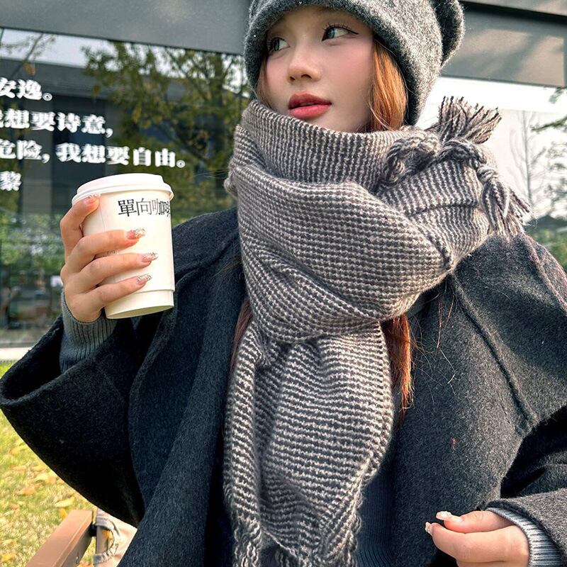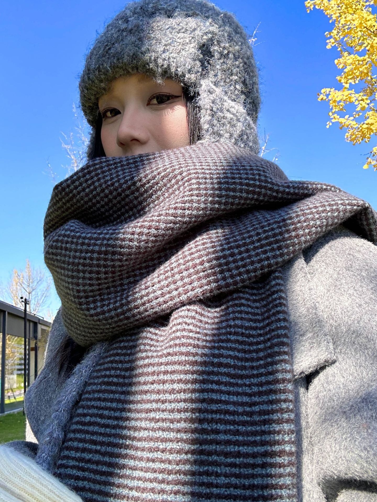 このマフラーは、大判サイズとトレンディなチェック柄が特徴で、寒い季節でも暖かく、おしゃれに楽しむことができます!インテリジェントなデザインで、様々なコーディネートに合わせやすく、大活躍間違いなしのアイテムです。