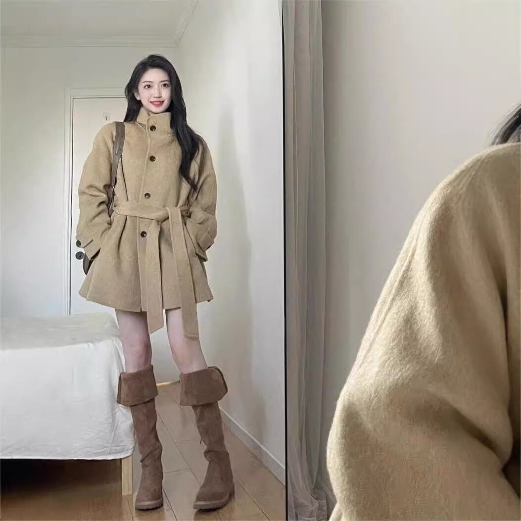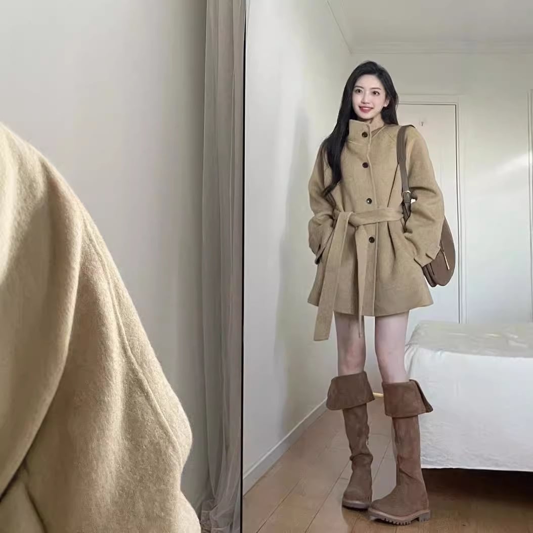 **この秋冬にぴったりな「新型の韓国版・カーキ色のラシャのコート」で、あなたのコーディネートを一層華やかに演出しましょう!**