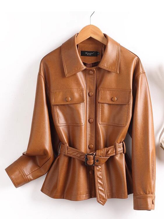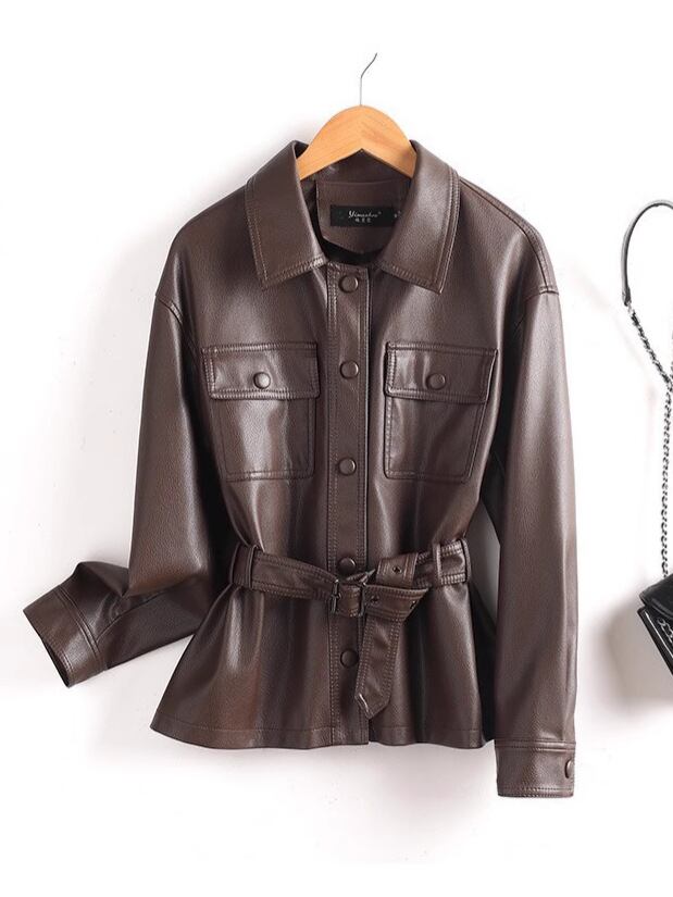 5400【春秋】 ハイエンド・女性のショートタイプの本革のコート