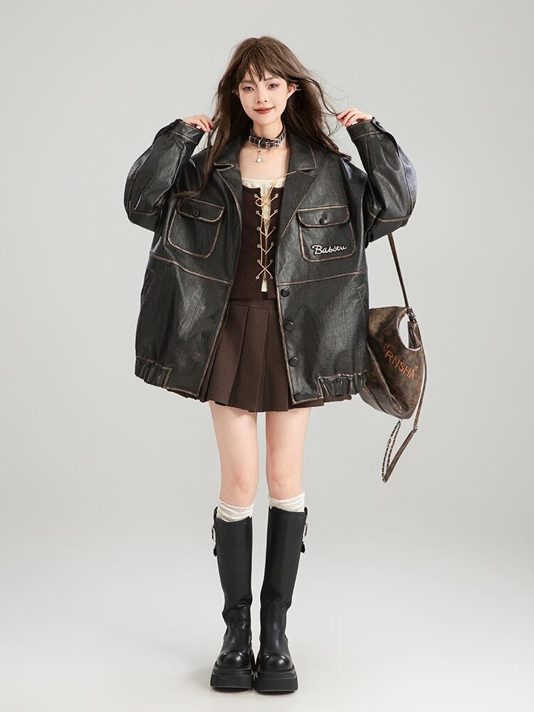 **この秋冬にぴったりな「KEIKOレトロブラックスーツカラーPUレザージャケット」で、個性的でスタイリッシュなコーディネートを楽しみましょう!**