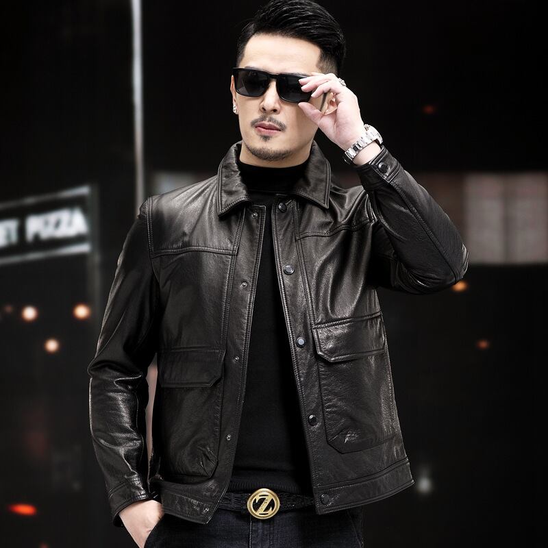 **この秋冬にぴったりな「メンズ 牛革オイルワックス・新型襟付き革ジャケット」で、クールで洗練されたコーディネートを楽しみましょう!**