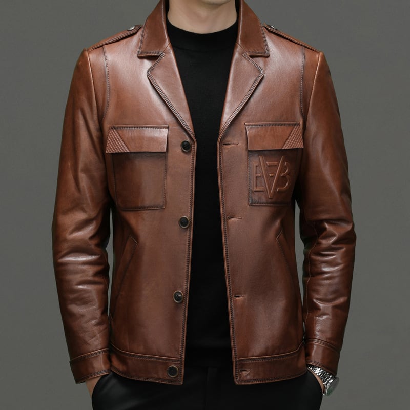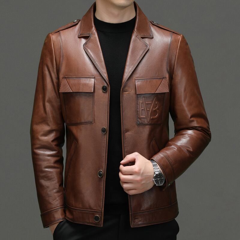 8073 高級レザーコート・メンズファーストレイヤー牛革ジャケット