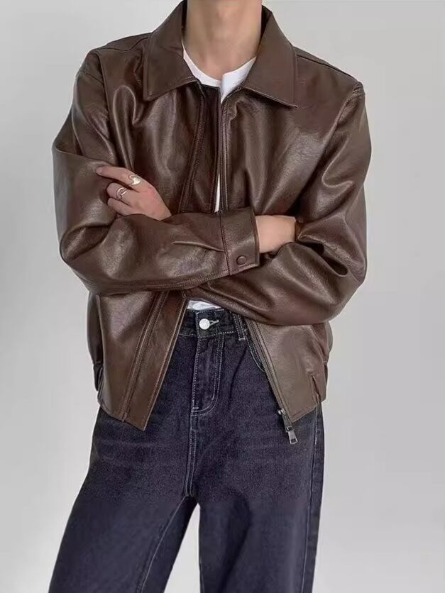 このジャケットは、春秋の季節に最適な高品質なPU素材を使用しており、軽やかで肌に優しい着心地が魅力です!レトロなデザインが特徴で、カジュアルな日常のコーディネートから特別なシーンまで幅広く活躍するアイテムです。