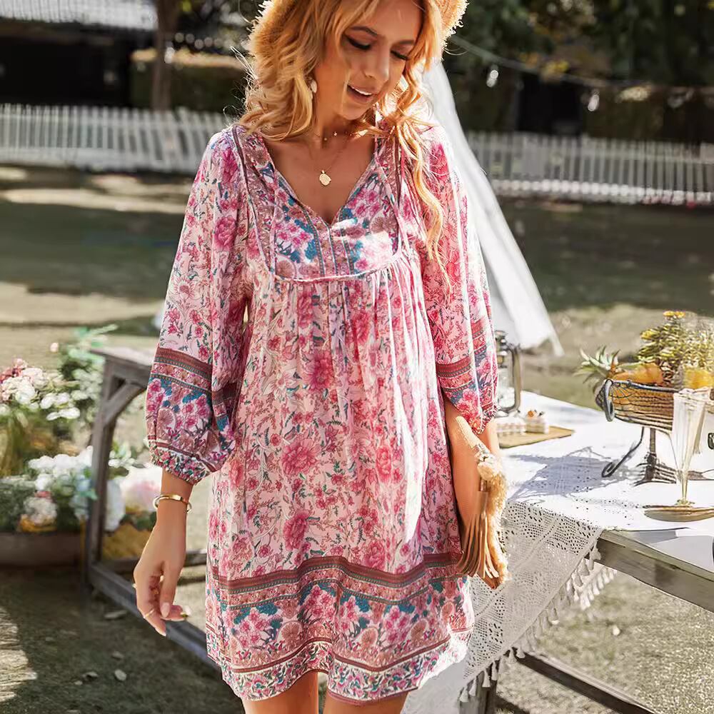 このワンピースは、春夏の季節に最適な高品質な素材を使用しており、軽やかで快適な着心地が魅力です!ボヘミアスタイルのデザインが特徴で、さまざまなシーンでおしゃれな印象を演出するアイテムです。