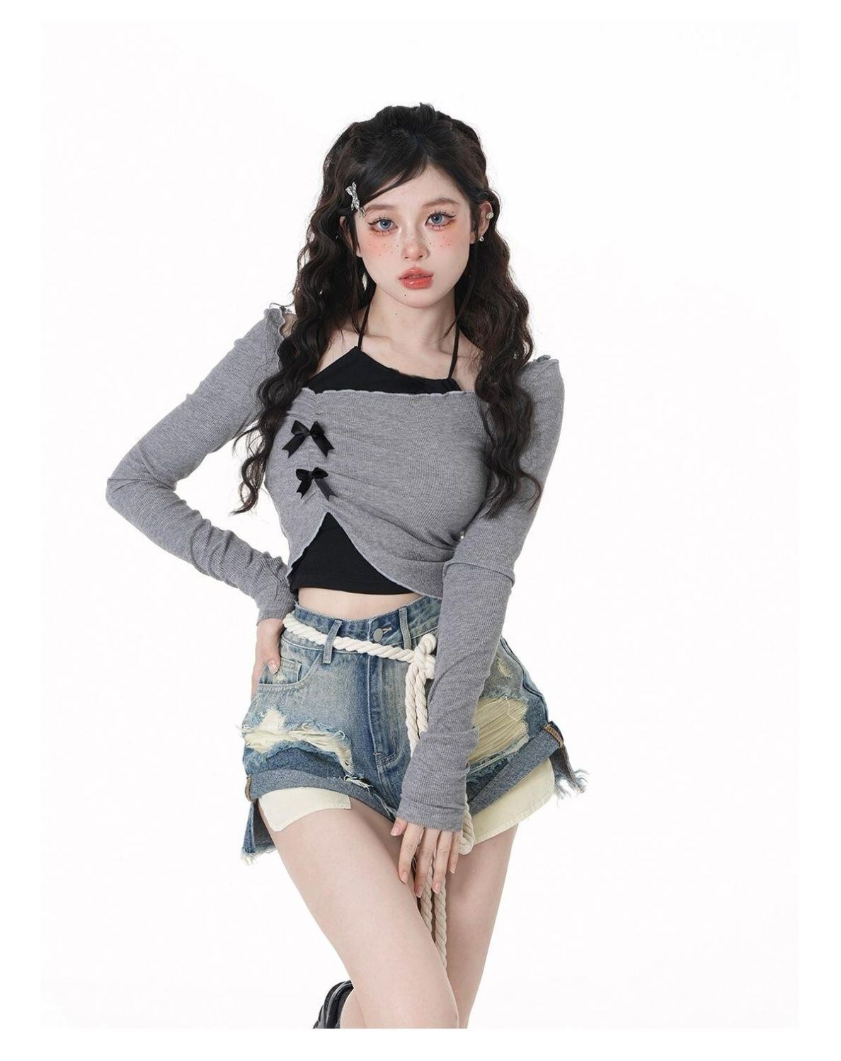 **この春夏にぴったりな「リトルガール・イレギュラーロングスリーブ T シャツトップス(2点セット)」で、個性あふれるスタイルを楽しみましょう!**
