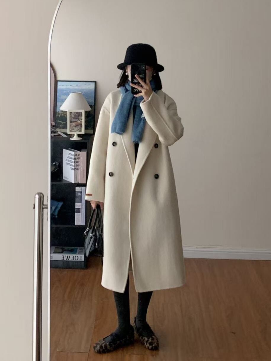 **この秋冬にぴったりな「高級ベビーキャメルウール・シンプルで上品なロング丈両面ウールコート」で、エレガントで温かみのある装いを楽しみましょう!**