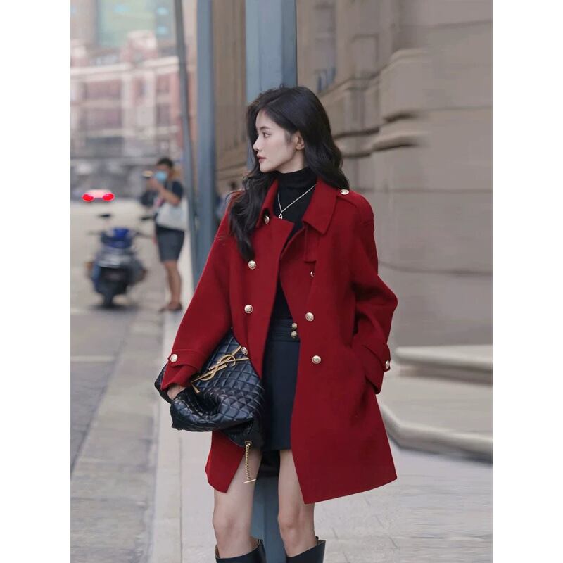 **この秋冬にぴったりな「新作復古赤いロングタイプの金ボタンのラシャコート」で、洗練されたスタイルを楽しみましょう!**
