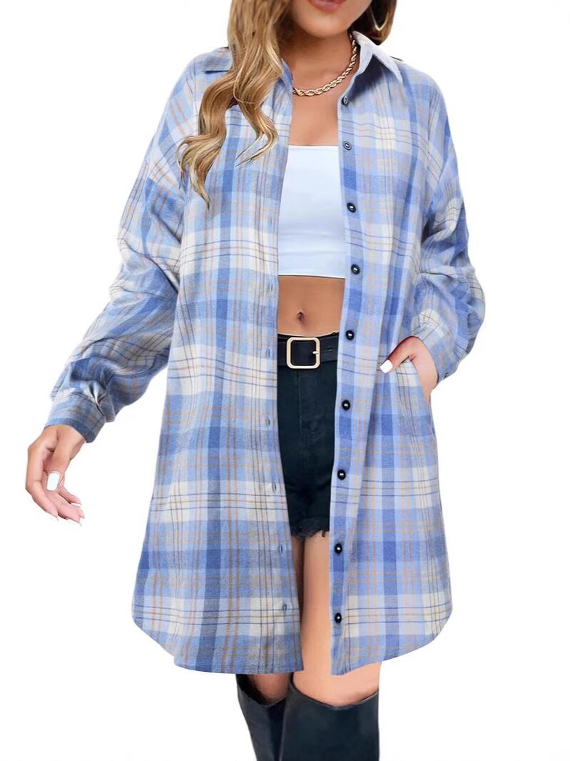 **この春秋にぴったりな「お洒落なロング格子シャツ」で、スタイリッシュな日常を楽しみましょう!**
